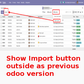 This Odoo app help us to Show Import button outside as like previous odoo version which is currently under favorites option.